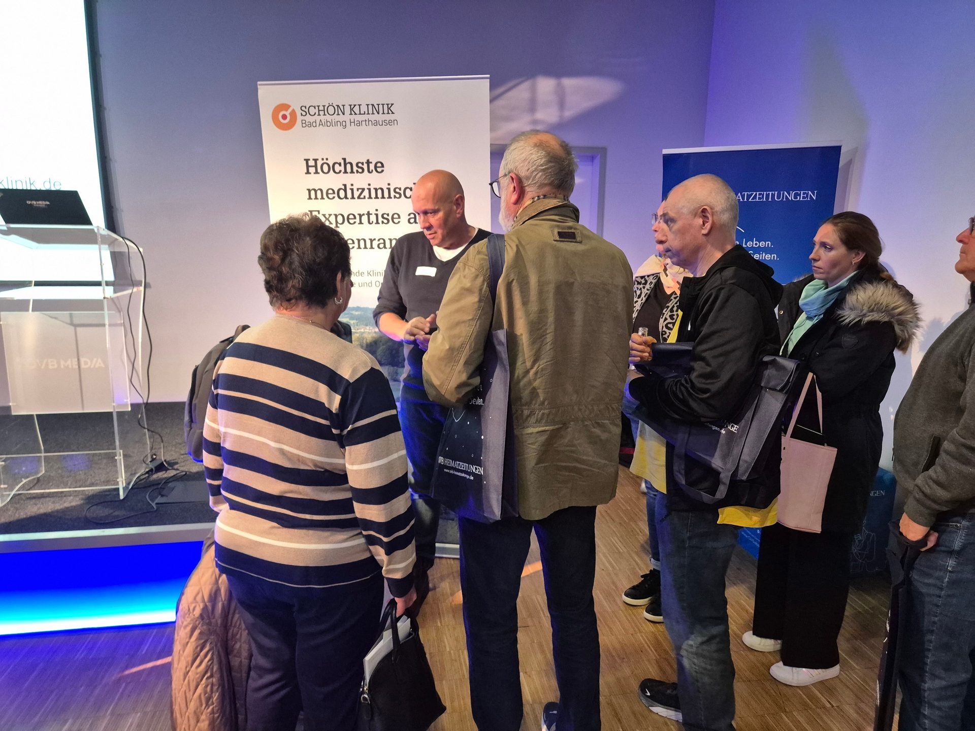 Die Besucherinnen und Besucher nutzten die besondere Gelegenheit, im Anschluss an die Veranstaltung, ihre Fragen zu stellen – von konservativen Behandlungsoptionen über Infiltrationstherapien bis hin zu konkreten OP-Verfahren. „Das war ein sehr guter Überblick über die Therapiemöglichkeiten – jetzt möchte ich wissen, was in meinem Fall möglich ist", so ein Besucher aus Kolbermoor.